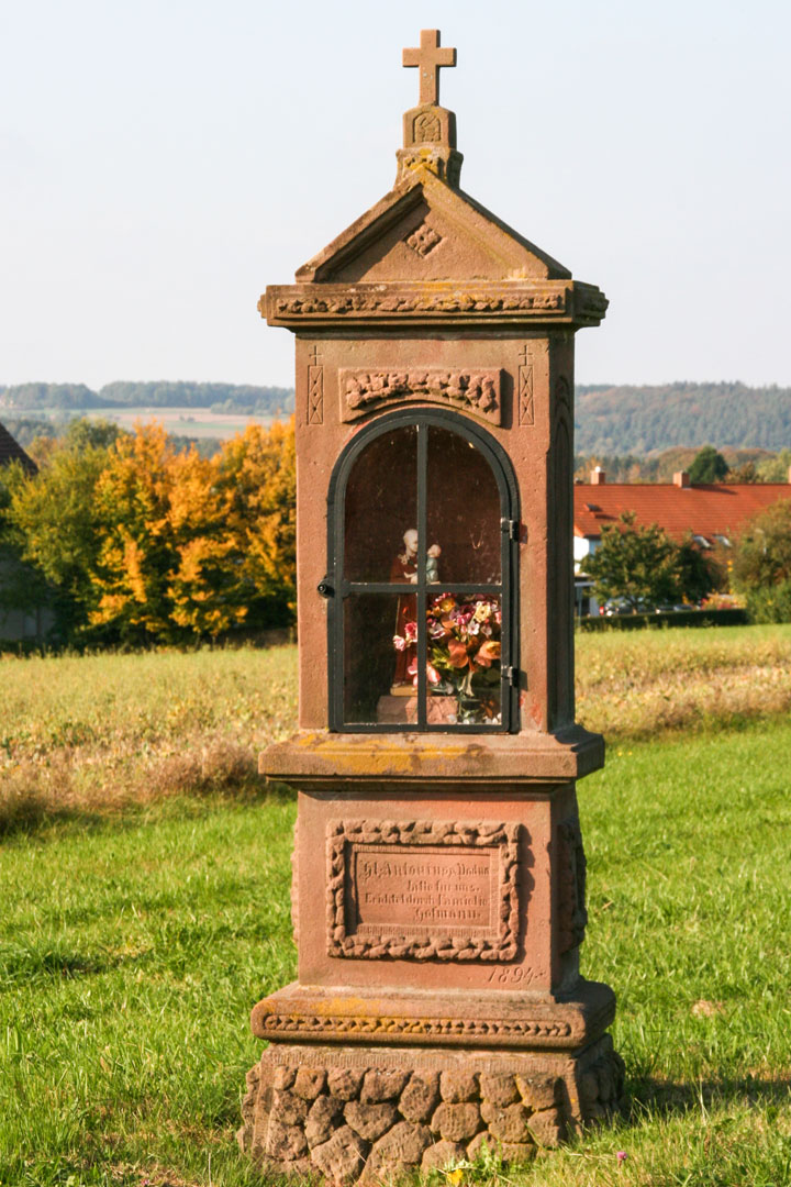Als Synonym für "Altarbildstock" wird häufig auch "Fluraltar" verwendet. Beide Bezeichnungen betonen die Funktion als "Altar", auf dem die Skulptur eines oder mehrerer Heiligen aufgestellt ist. Der Sockel des Altarbildstocks verfügt über Basis, Mittelteil und Abdeckplatte. Auf letzterer ist eine Aufbau in Form eines Häuschens errichtet, das in der Regel auf allen Seiten aus Stein besteht und durch eine Glas- oder Gittertür verschlossen ist. Über dem Satteldach erhebt sich meistens ein bekrönendes Element, oft ein Kreuz. Solche "Fluraltäre" sind als Stationen von Prozessionen prädestiniert.