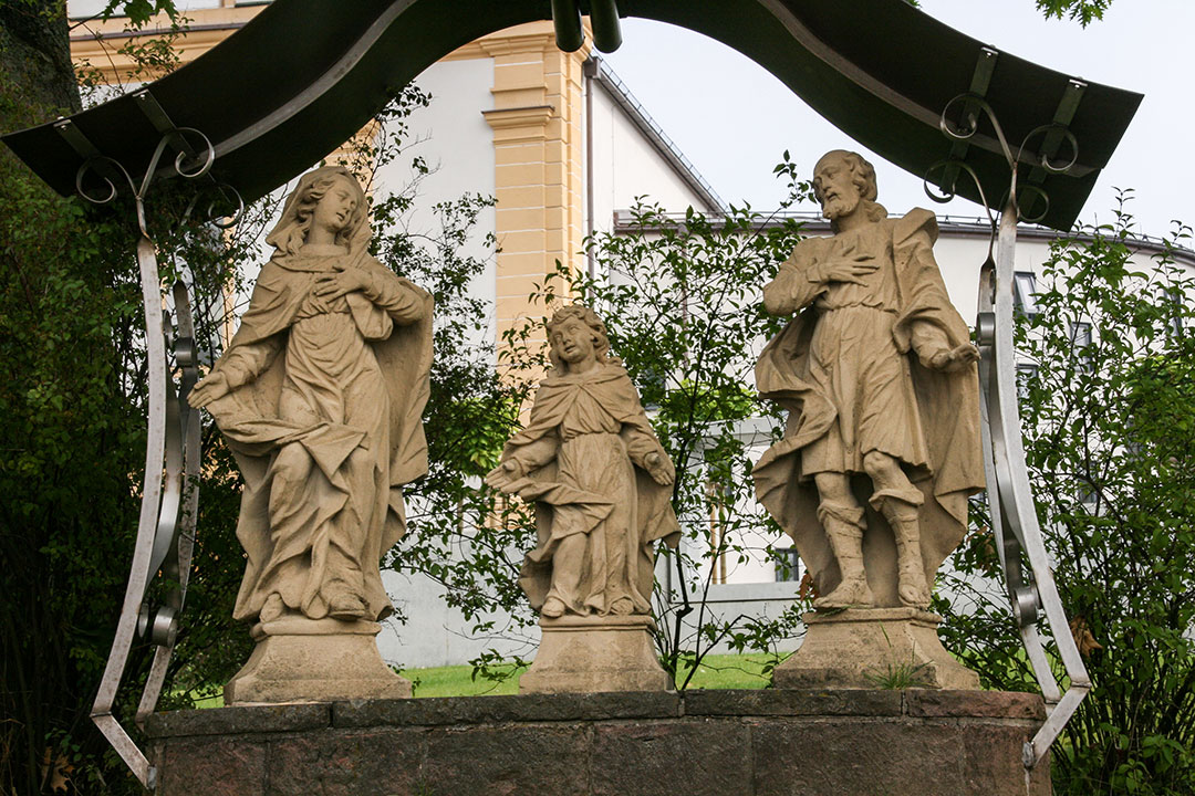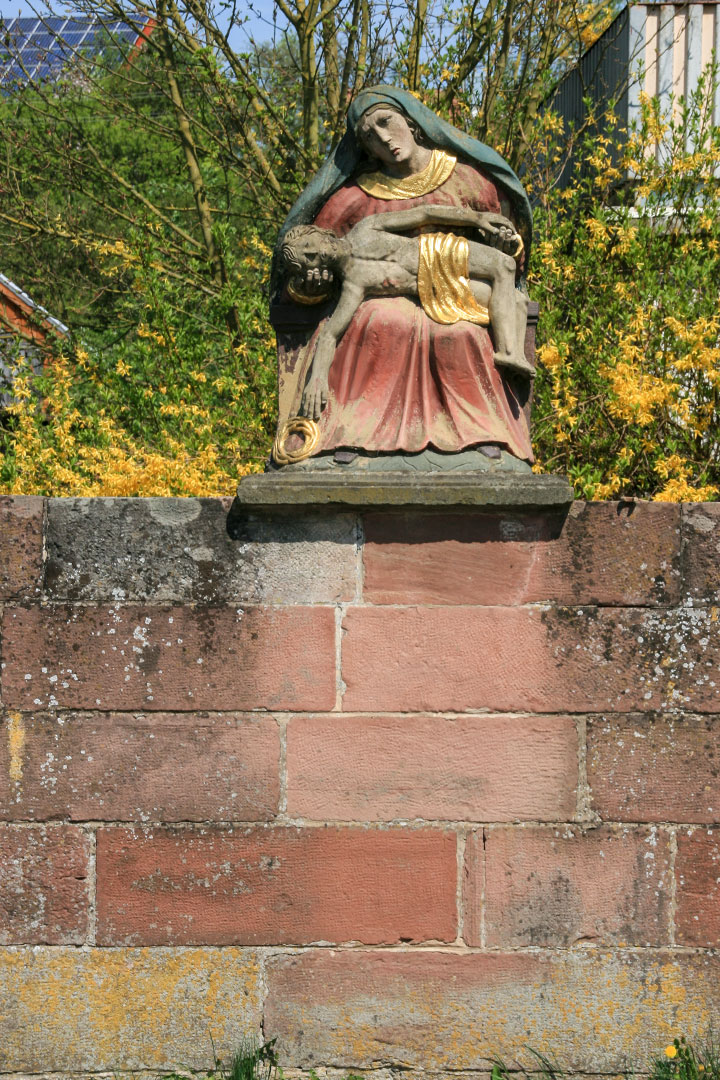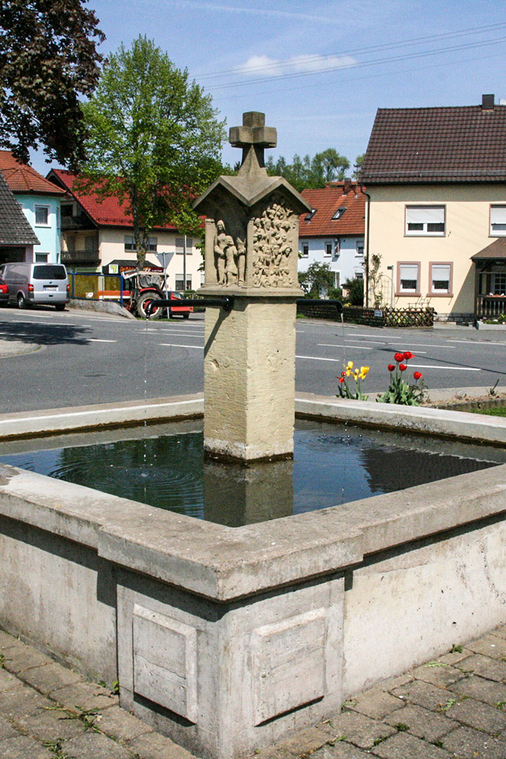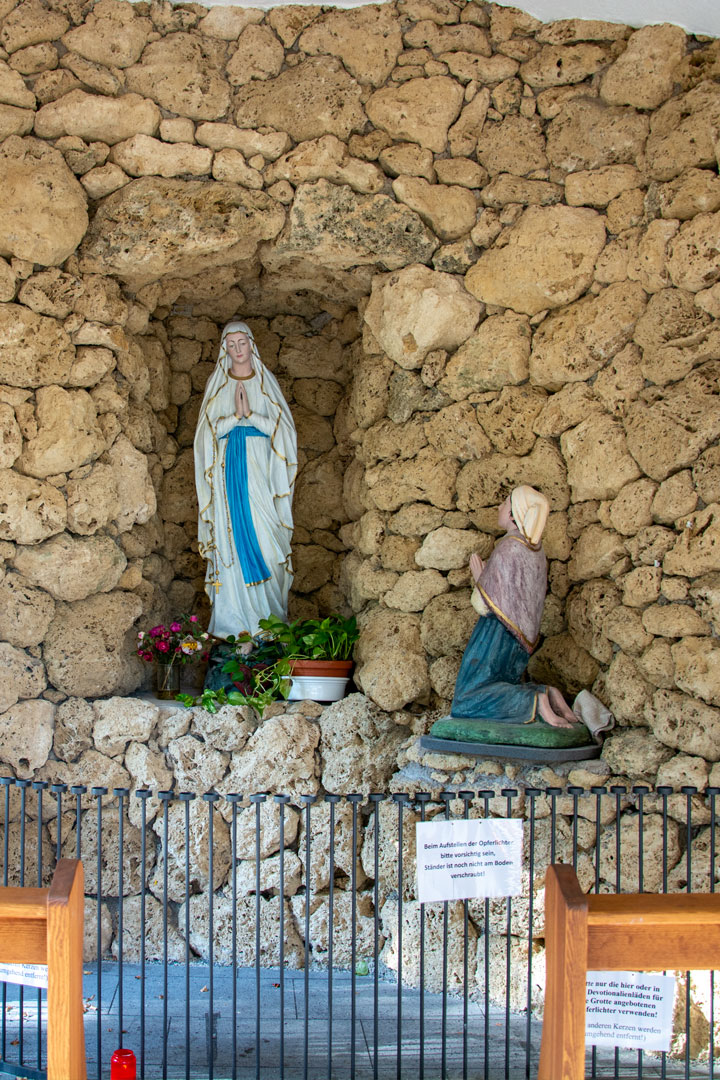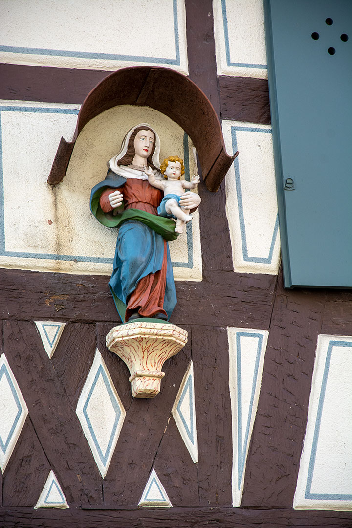 Vor allem an exponierter Stelle können Relieftafeln beiderseits Bildmovtive präsentieren. Häufig ist eines davon die Darstellung eines Gnadenbildes.