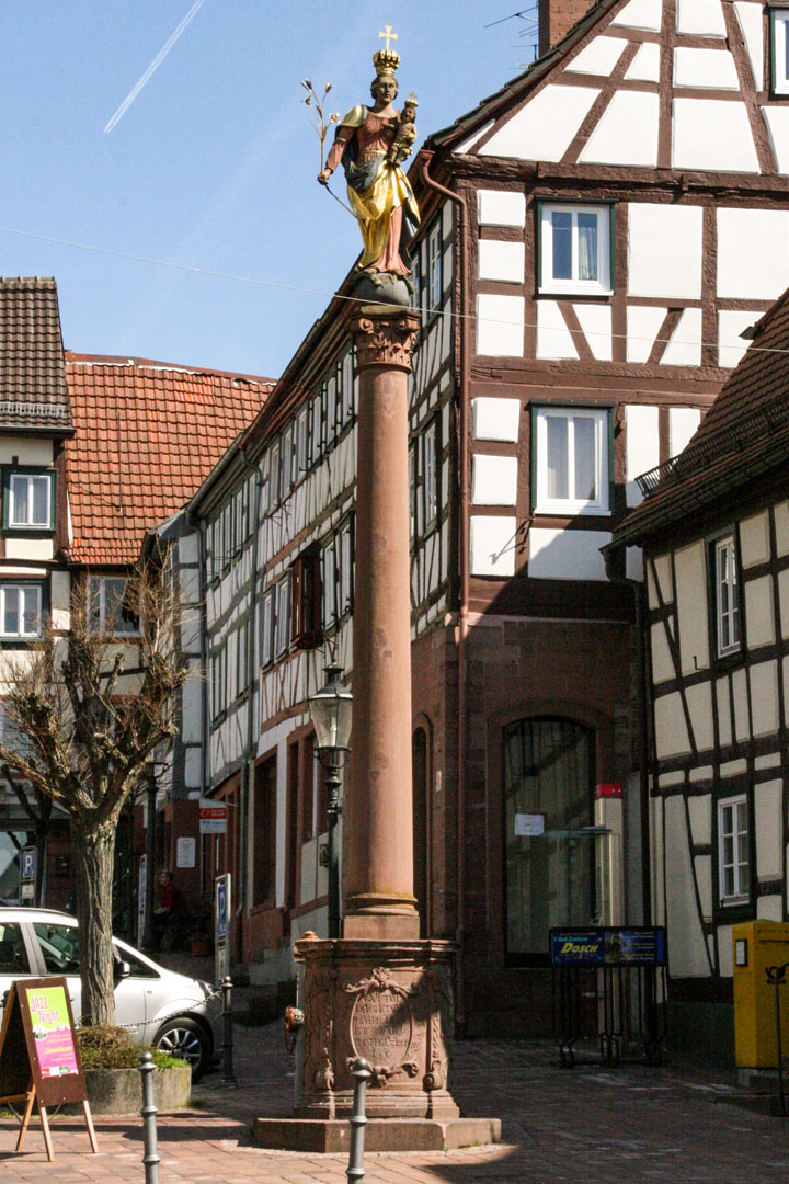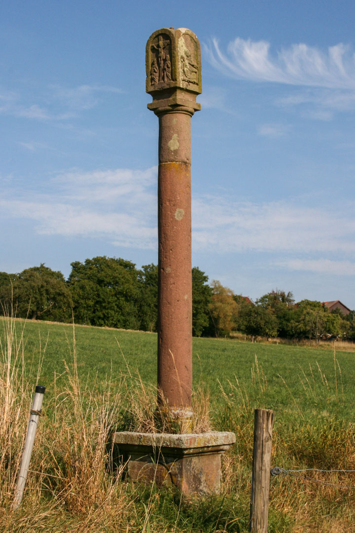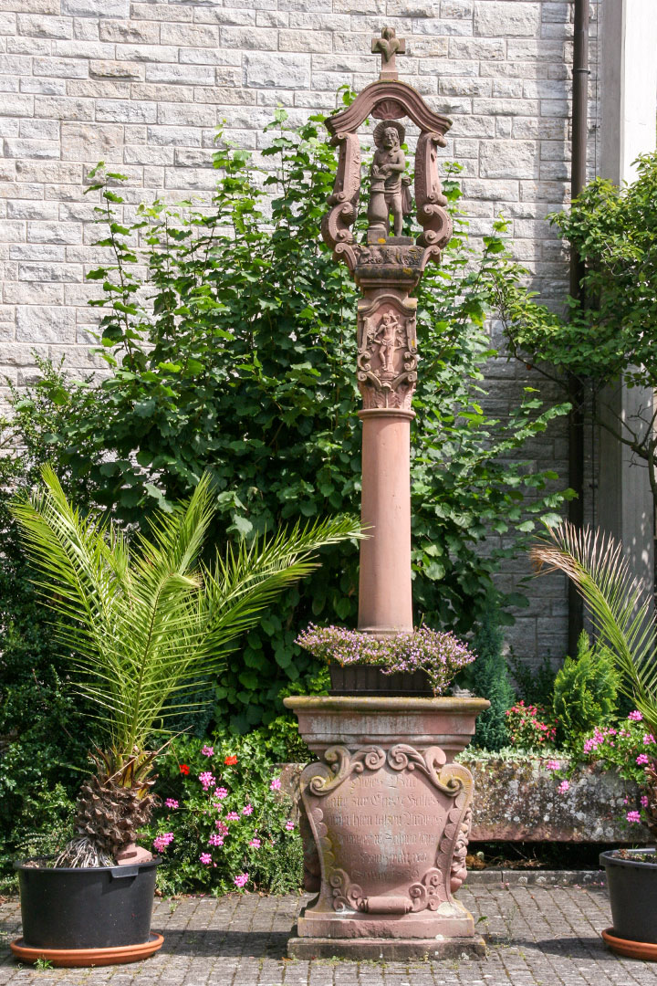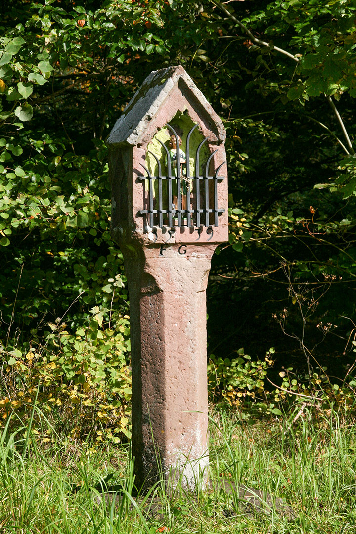 Seit dem Barock rücken an die Stelle von Bildstockaufsätzen Skulpturen von Heiligen. Dem Typ des figuralen Bildstocks sind die religiösen Kleindenkmale zuzuordnen, die sich an den für Bildstöcke üblichen Aufbau mit Sockel, Pfeiler oder Säule mit Kapitell und Kopfteil halten und die Dimensionen eines Bildstocks einhalten. Gegenüber Hochsäulen weisen sie damit deutlich geringere Ausmaße auf.
